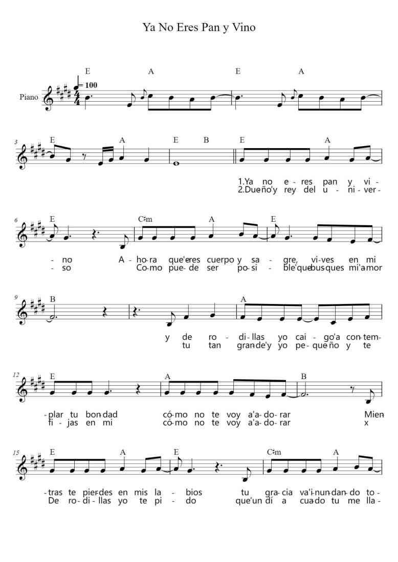 - IntroductionYa No Eres Pan y Vino, Sheet Music is D Major, Composer by Jorge Luis Bohorquez and Arr.Jorge Luis Bohorquez,Suitable for all Users to play learning.