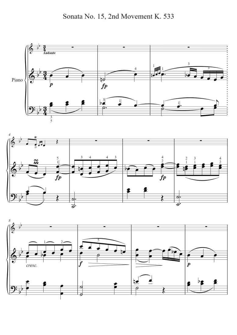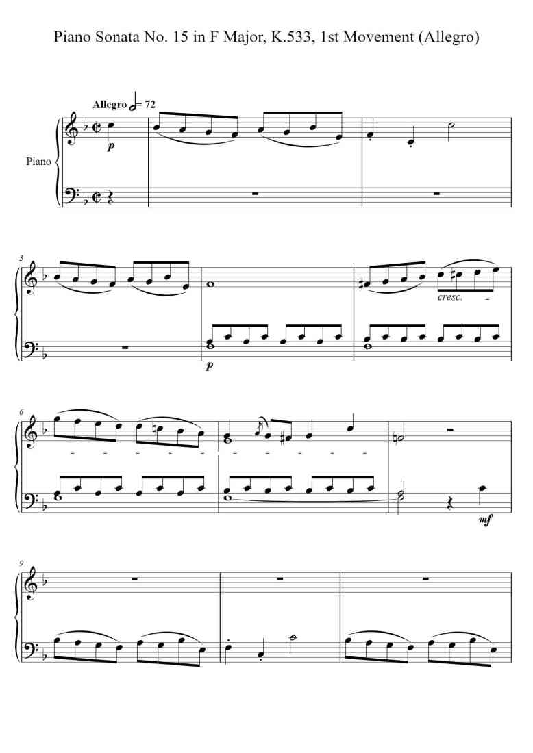 - IntroductionSonata No. 15, 3rd Movement K. 533, Sheet Music is F Major, Composer by W.A. Mozart. and Arr.Wolfgang Amadeus Mozart,Suitable for all Users to play learning.