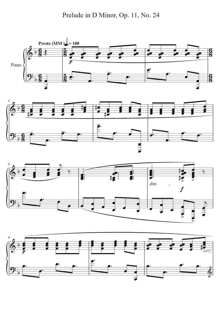 Piano Song Names: Prelude in D Minor, Op. 11, № 24