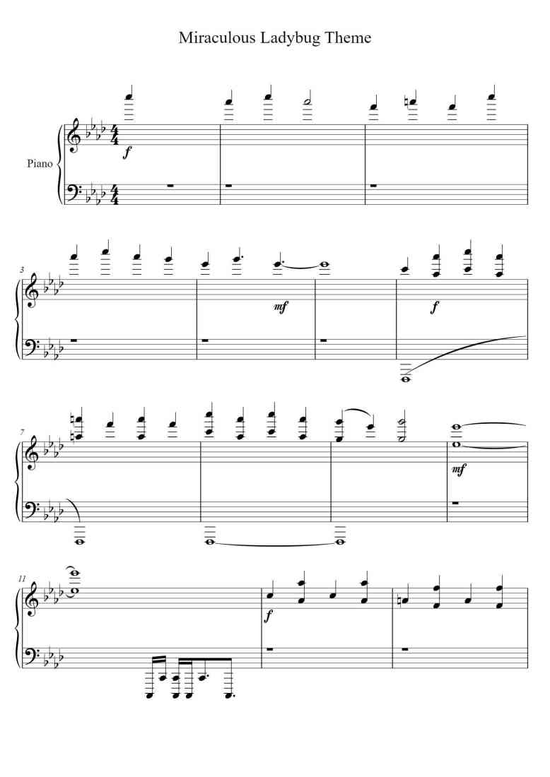 - IntroductionMiraculous ladybug theme, Sheet Music is B Major, Composer by Brynn Shults and Arr.Brynn Shults,Suitable for all Users to play learning.