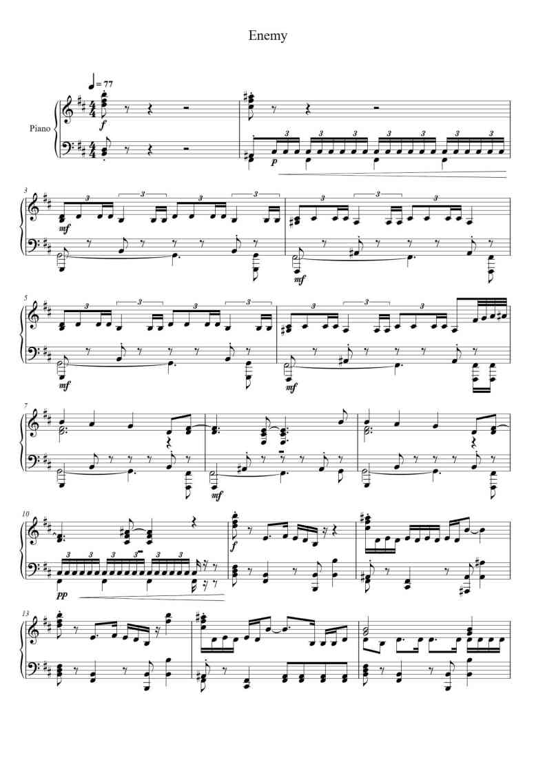 - IntroductionEnemy – Imagine Dragons, Sheet Music is D Major, Composer by Imagine Dragons and Arr.Imagine Dragons,Suitable for all Users to play learning.