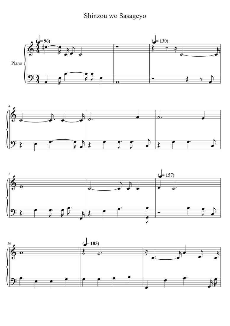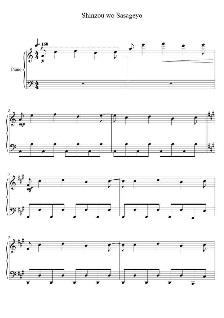 - Introductionshinzou wo sasageyo, Sheet Music is C Major, Composer by linzedhorizon and Arr.Misc Cartoons,Suitable for all Users to play learning.