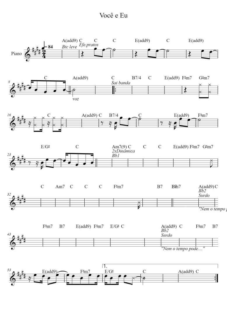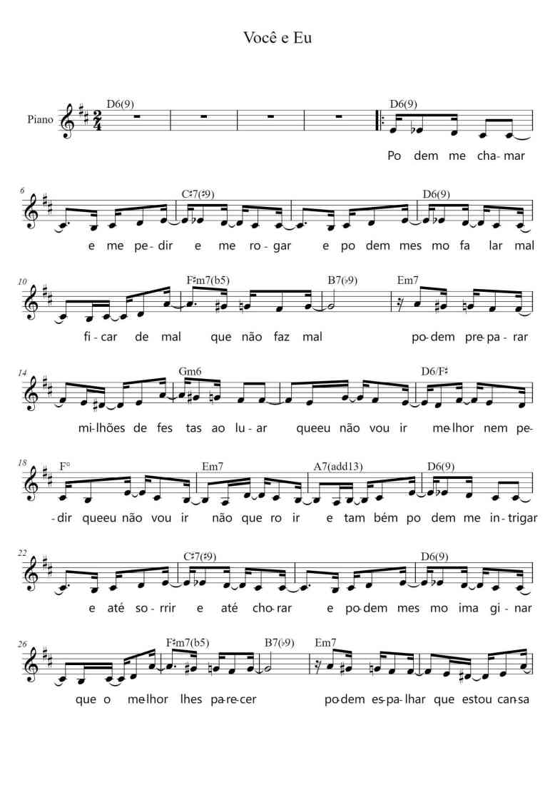 - IntroductionVOCÊ E EU, Sheet Music is A Major, Composer by ELIANE RIBEIRO and Arr.Unknown author,Suitable for all Users to play learning.