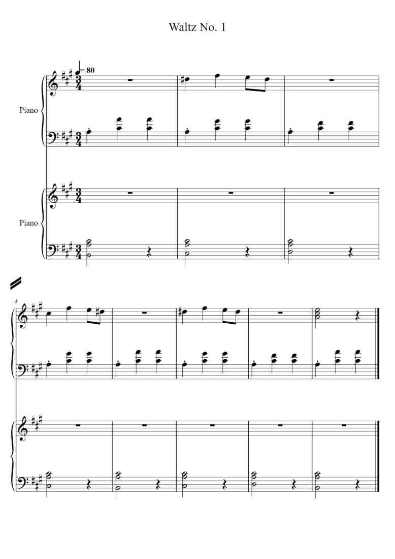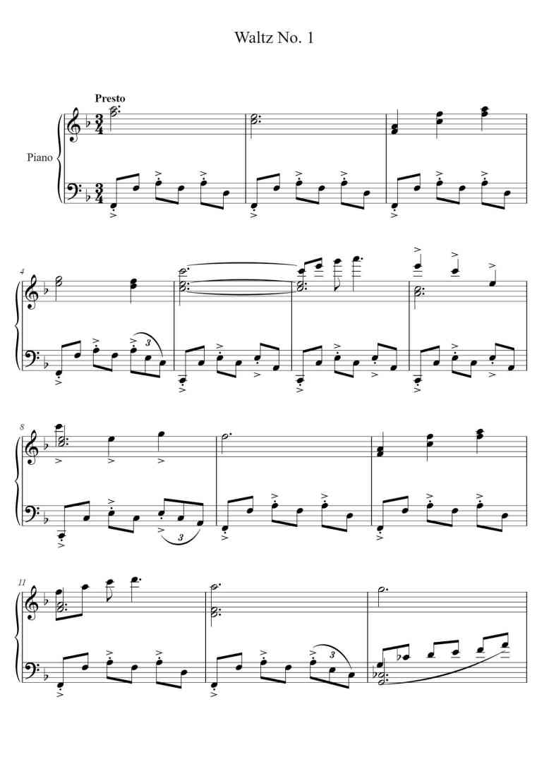 - IntroductionWaltz No. 1, Sheet Music is A Major, Composer by xxx and Arr.RIFLES,Suitable for all Users to play learning.