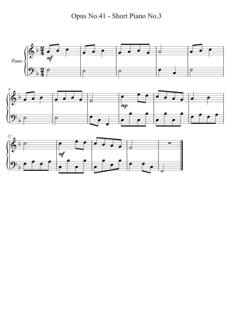 - IntroductionOpus No.41 - Short Piano No.8, Sheet Music is C Major, Composer by Gregpe Malkin and Arr.Gregpe Malkin,Suitable for all Users to play learning.