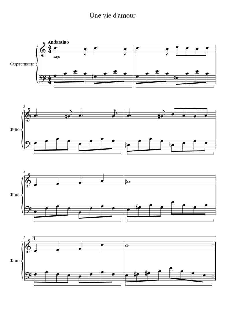 - IntroductionUne vie d'amour, Sheet Music is C Major, Composer by G.Garvarec and Arr.Georges Garvarentz,Suitable for all Users to play learning.