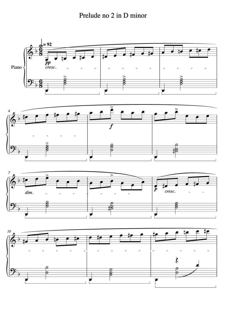 - IntroductionPrelude No. 2 in D minor, Sheet Music is F Major, Composer by Ean Gunter and Arr.Delard,Suitable for all Users to play learning.