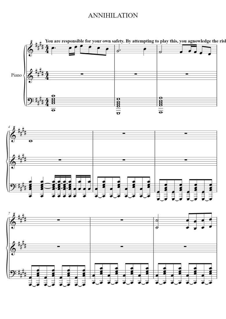 - IntroductionANNIHILATION, Sheet Music is E Major, Composer by Michael Goddard and Arr.Michael Goddard,Suitable for all Users to play learning.