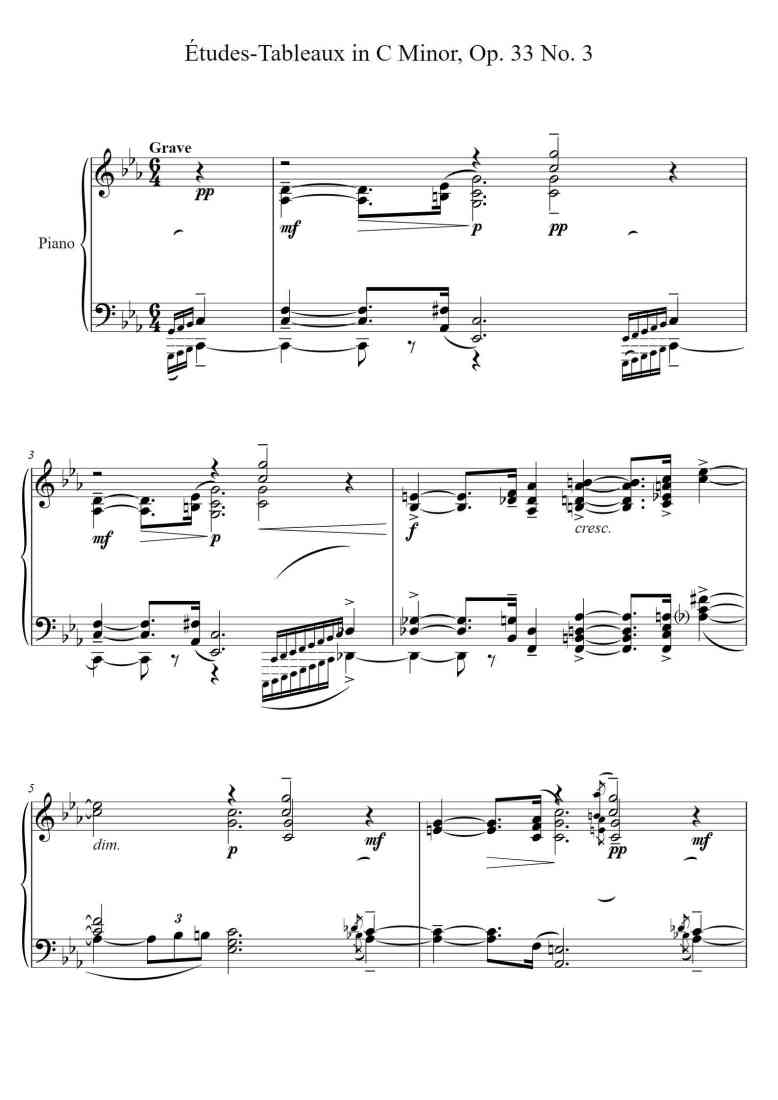 Piano Song Names: Études-tableaux, Op.33, No. 3 Grave