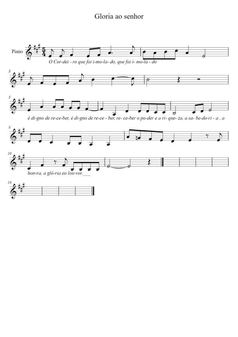 - IntroductionGlória ao Senhor, Sheet Music is G Major, Composer by A. Bravo Arm.: F. Castedo and Arr.Windgan,Suitable for all Users to play learning.