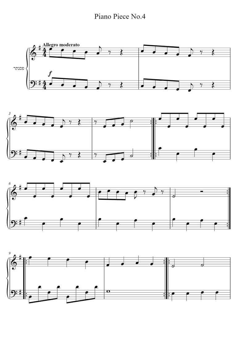 - IntroductionPiano Piece 4, Sheet Music is C Major, Composer by Frenald and Arr.Frenald,Suitable for all Users to play learning.