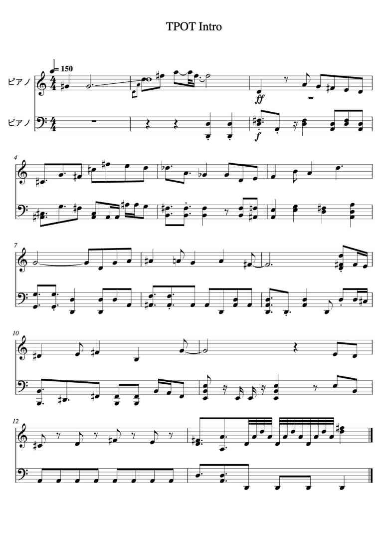 - IntroductionTPOT Intro, Sheet Music is D Major, Composer by Arranged by Juno Teh Planet Original by Micheal Huang and Arr.Michael Huang,Suitable for all Users to play learning.
