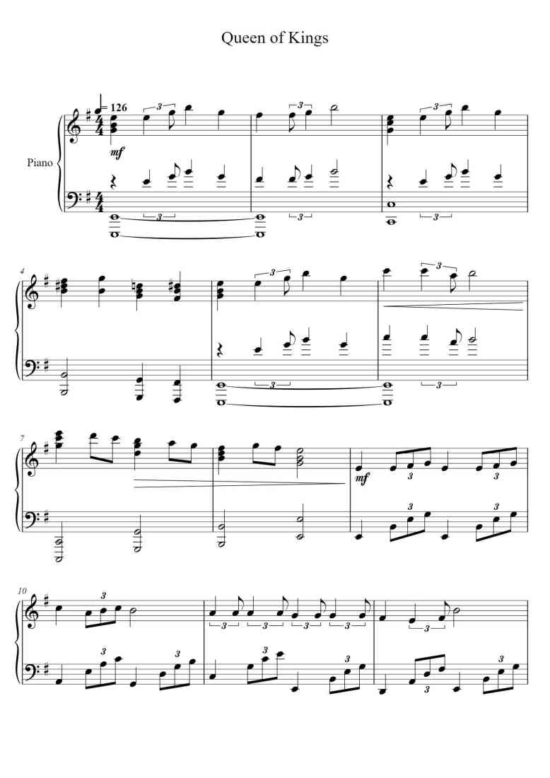 - IntroductionQueen of Kings, Sheet Music is G Major, Composer by Alessandra Mele and Arr.Alessandra Mele,Suitable for all Users to play learning.