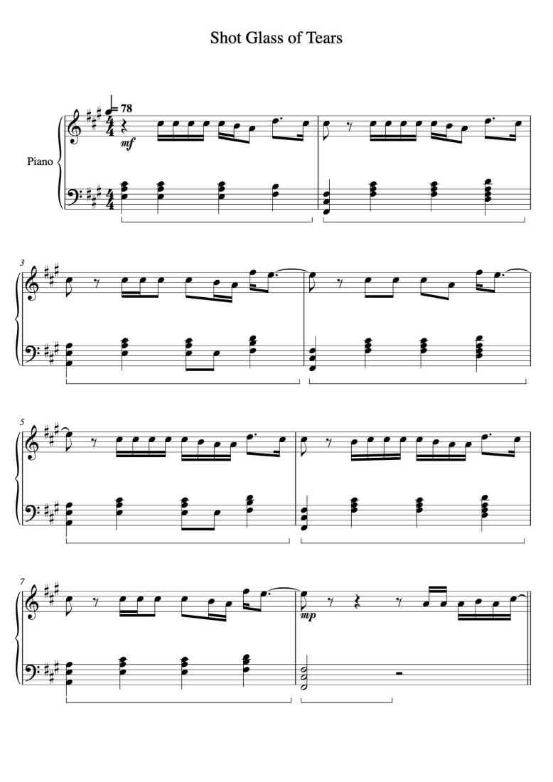 - IntroductionShot Glass of Tears, Sheet Music is C Major, Composer by Carla Sánchez Plaza and Arr.Carla Sánchez Plaza,Suitable for all Users to play learning.