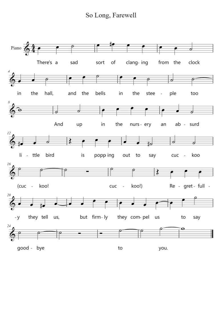 - IntroductionSo Long, Farewell, Sheet Music is D Major, Composer by Out of the Box and Arr.Out of the Box,Suitable for all Users to play learning.