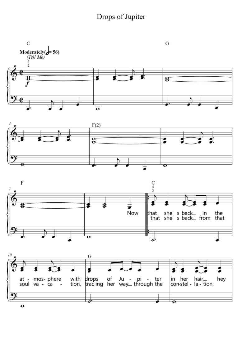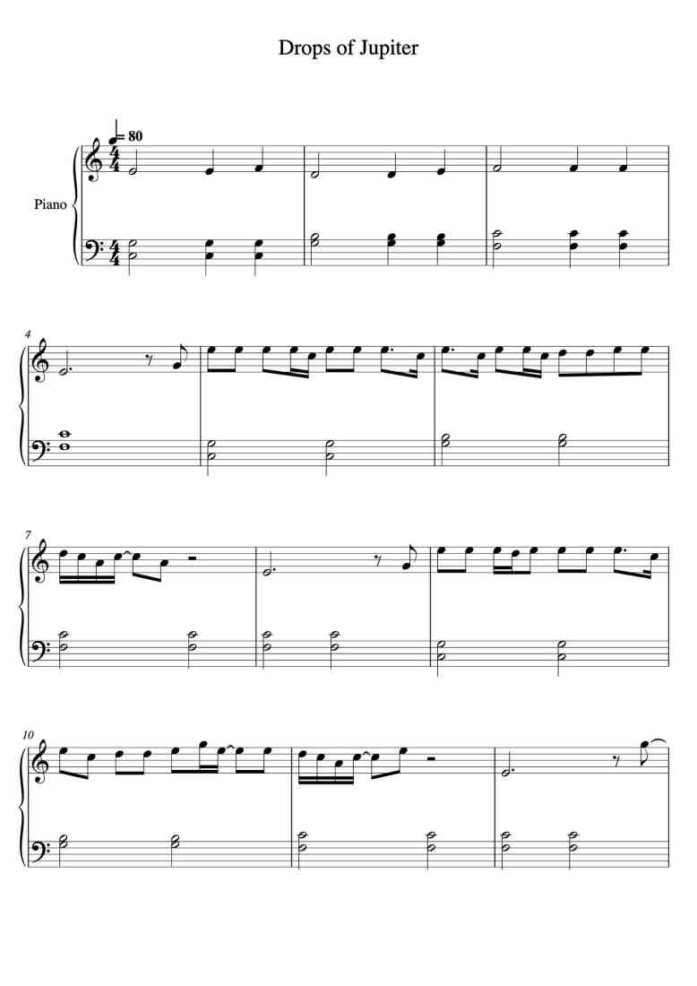 - IntroductionDrops of Jupiter, Sheet Music is C Major, Composer by arr.: Sebastian Faber original score by: Tani Molder and Arr.Tani Molder,Suitable for all Users to play learning.