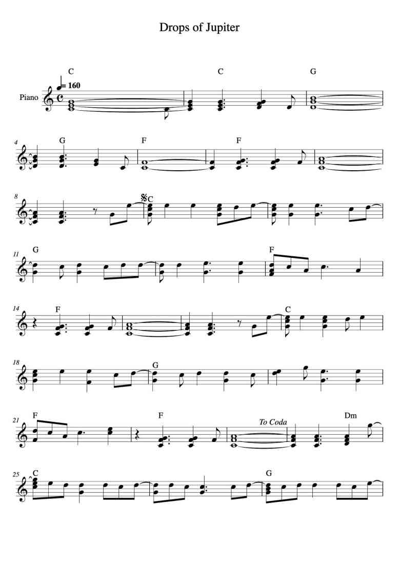 - IntroductionDrops of Jupiter, Sheet Music is C Major, Composer by Kai Jaeger and Arr.Train,Suitable for all Users to play learning.