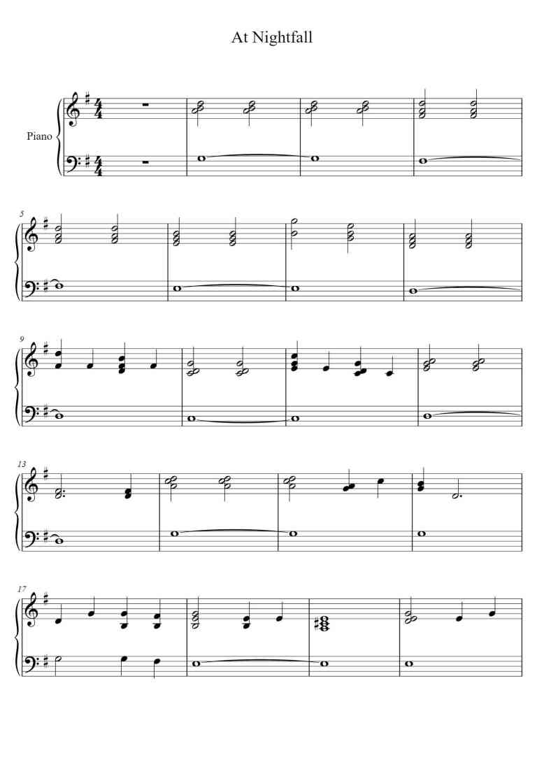 - IntroductionAt Nightfall, Sheet Music is G Major, Composer by Pierslace Terram and Arr.Yuki Kajiura,Suitable for all Users to play learning.
