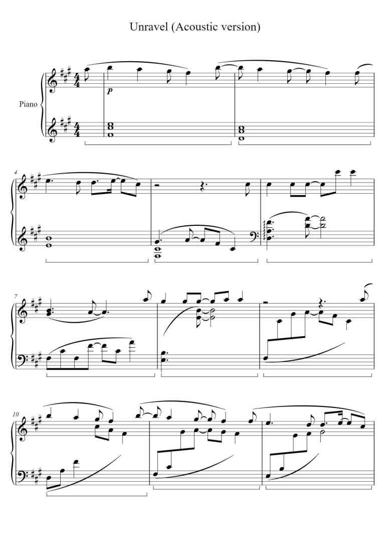 - IntroductionUnravel (Acoustic), Sheet Music is A Major, Composer by xxx and Arr.TK From Ling Tosite Sigure,Suitable for all Users to play learning.