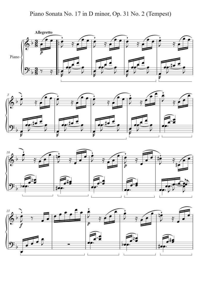 Piano Song Names: Piano Sonata No.17, Op.31 No.2