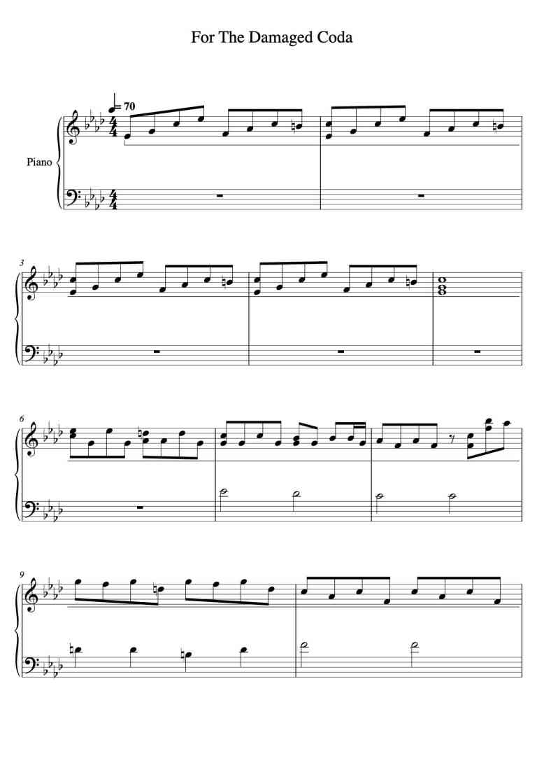 - IntroductionFor the Damaged Coda, Sheet Music is Ab Major, Composer by Leightio Moiflower and Arr.Blonde Redhead,Suitable for all Users to play learning.