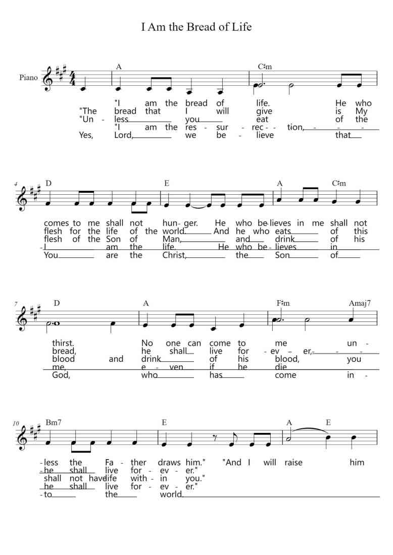 Piano Song Names: I Am The Bread of Life