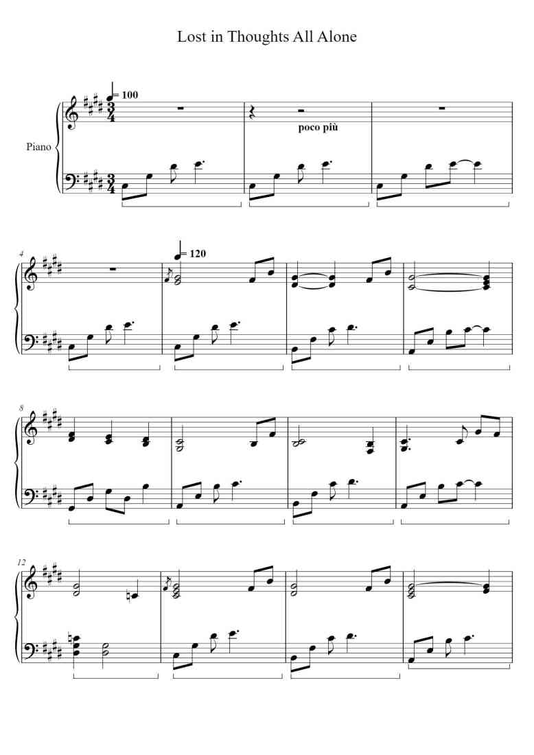 - IntroductionLost in Thoughts All Alone, Sheet Music is F Major, Composer by Nintendo and Arr.Nintendo,Suitable for all Users to play learning.