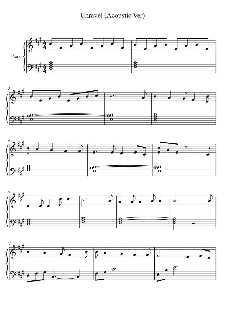 - IntroductionUnravel (Acoustic ver.), Sheet Music is A Major, Composer by Original Artist: TK from Ling Tosite Sigure and Arr.TK from Ling Tosite Sigure,Suitable for all Users to play learning.