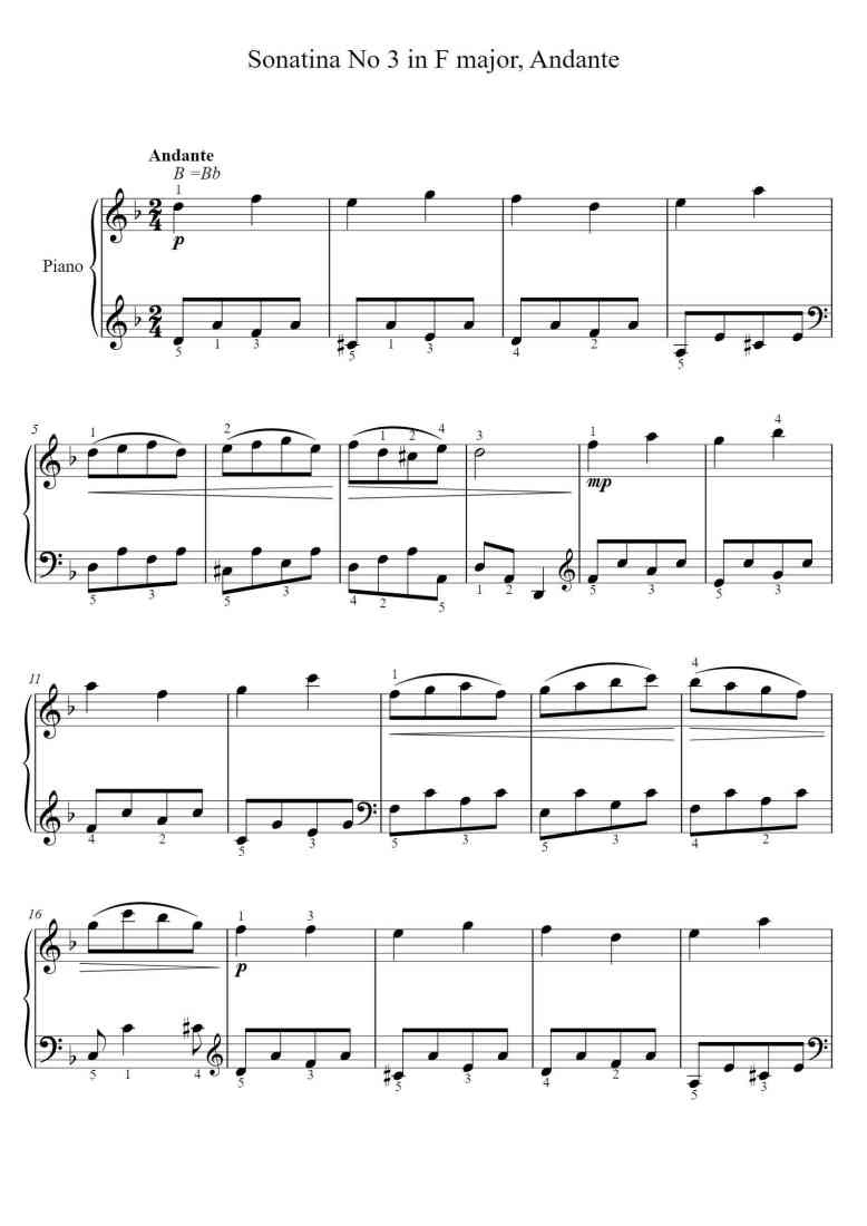 Piano Song Names: Sonatina No. 3 in F Major: Allegretto