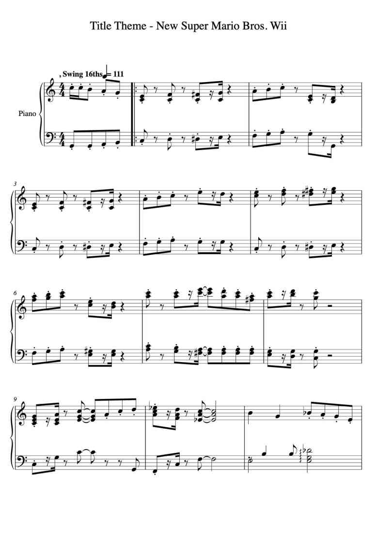- IntroductionTitle Theme - New Super Mario Bros. Wii, Sheet Music is C Major, Composer by xxx and Arr.Koji Kondo,Suitable for all Users to play learning.