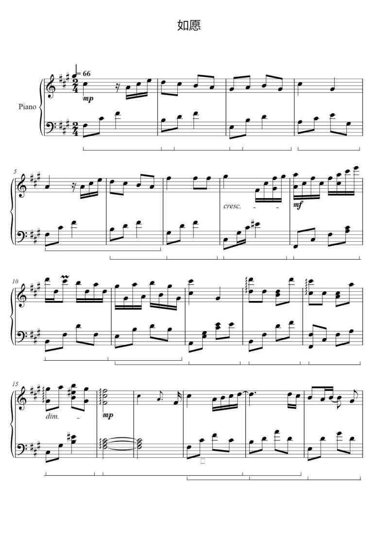- Introduction如愿, Sheet Music is A Major, Composer by 曲:钱雷 钢琴改编:文武贝 and Arr.周杰伦,Suitable for all Users to play learning.