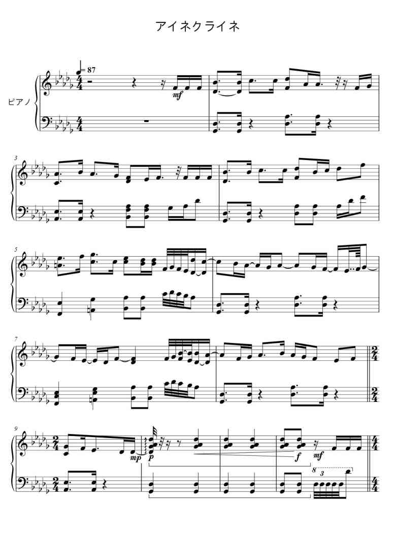 - Introductionアイネクライネ, Sheet Music is Db Major, Composer by 요네즈 켄시(米津玄師) and Arr.米津玄師,Suitable for all Users to play learning.