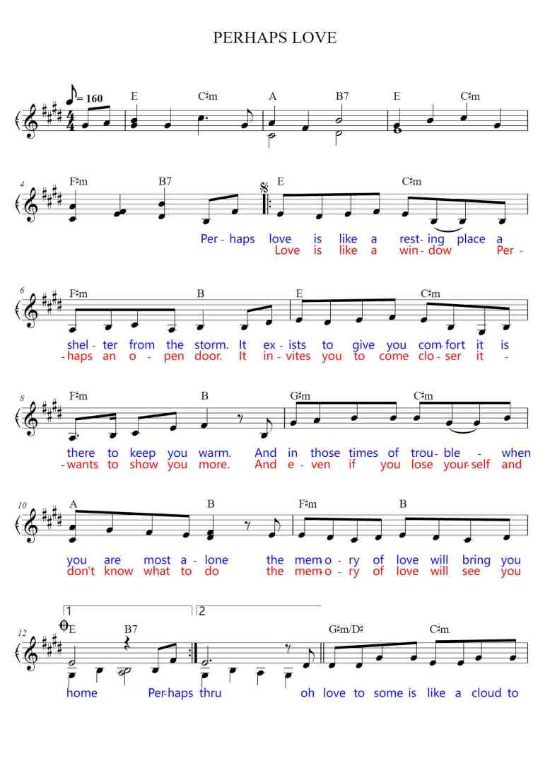 - IntroductionPerhaps Love, Sheet Music is A Major, Composer by John Denver Arr. Denis Vieira and Arr.John Denver,Suitable for all Users to play learning.