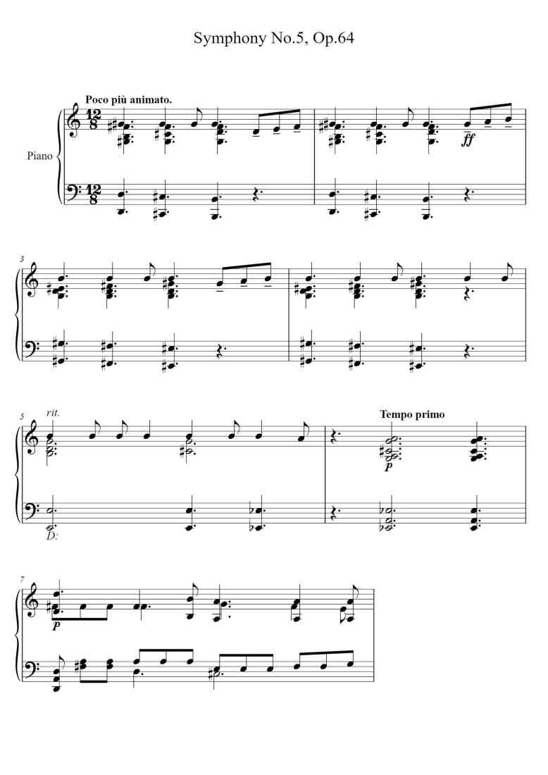 Piano Song Names: Symphony No. 5 in E Minor, Op. 64: III. Valse