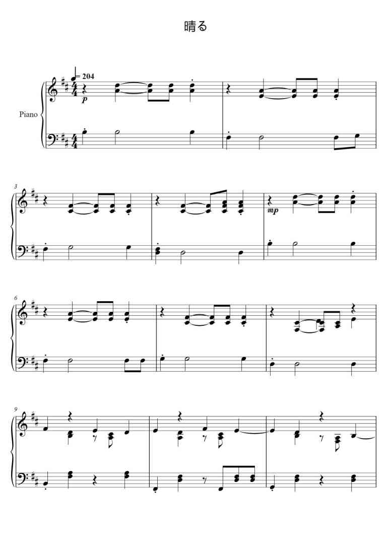 Piano Song Names: 晴る