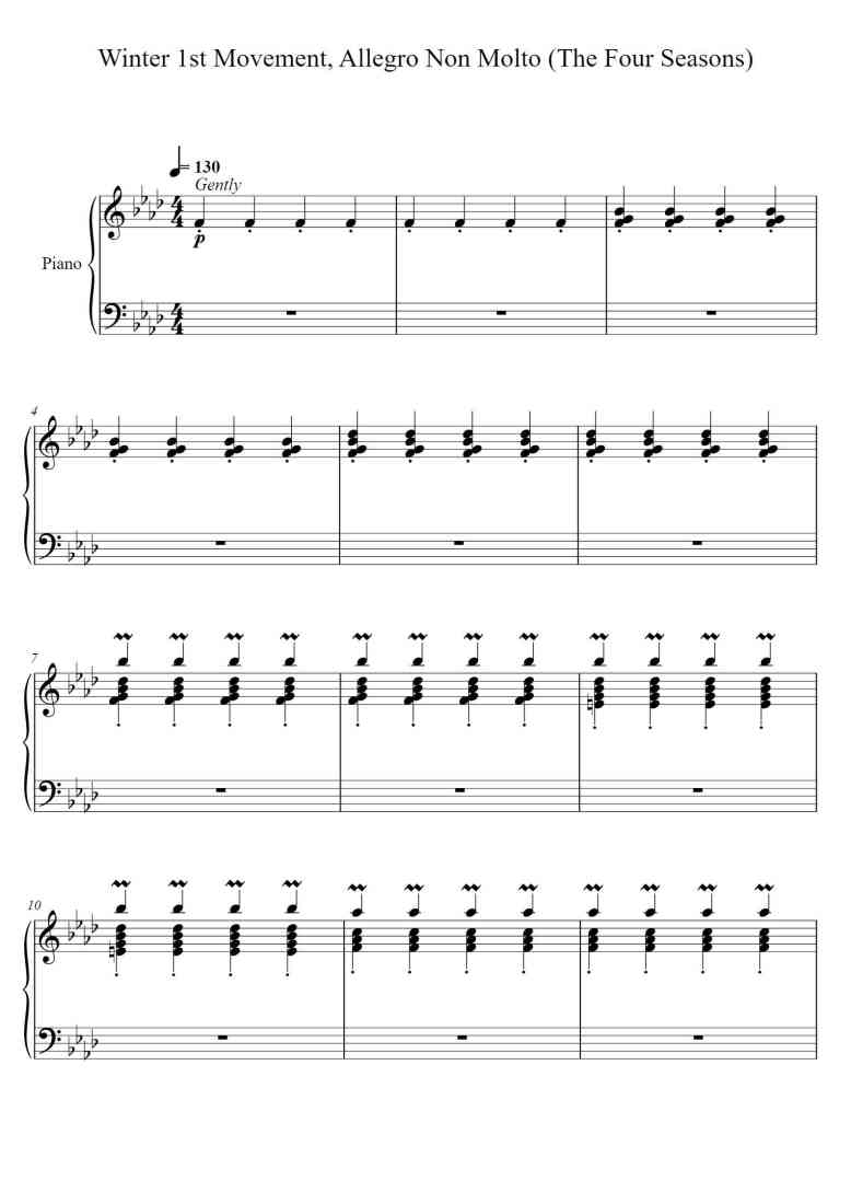 - IntroductionFour Seasons: Winter, Sheet Music is Ab Major, Composer by Antonio Vivaldi and Arr.Antonio Vivaldi,Suitable for all Users to play learning.