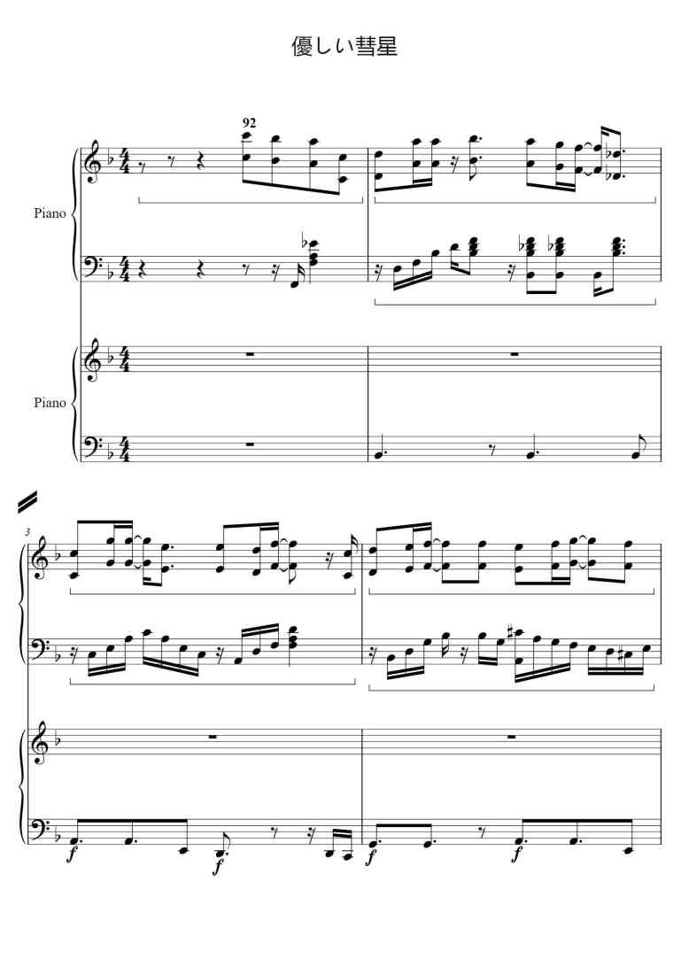 - Introduction優しい彗星, Sheet Music is F Major, Composer by youtube:美穂_の_musicsheet and Arr.YOASOBI,Suitable for all Users to play learning.