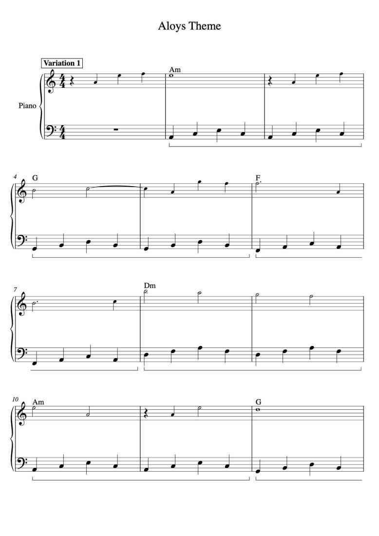 - IntroductionALOY'S THEME Horizon Zero Dawn, Sheet Music is C Major, Composer by Misc Computer Games and Arr.xxx,Suitable for all Users to play learning.
