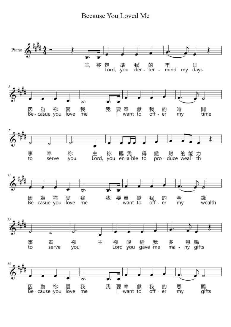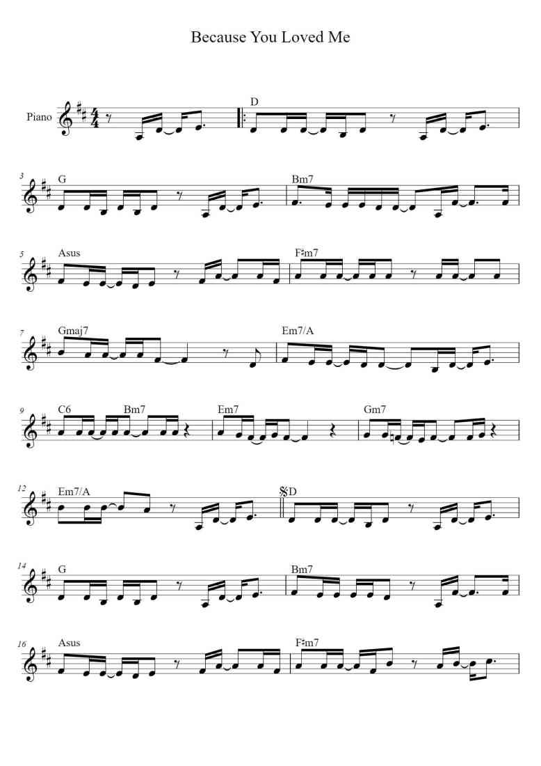 - IntroductionBecause you loved me, Sheet Music is Db Major, Composer by Marcos Leite and Arr.Celine Dion,Suitable for all Users to play learning.