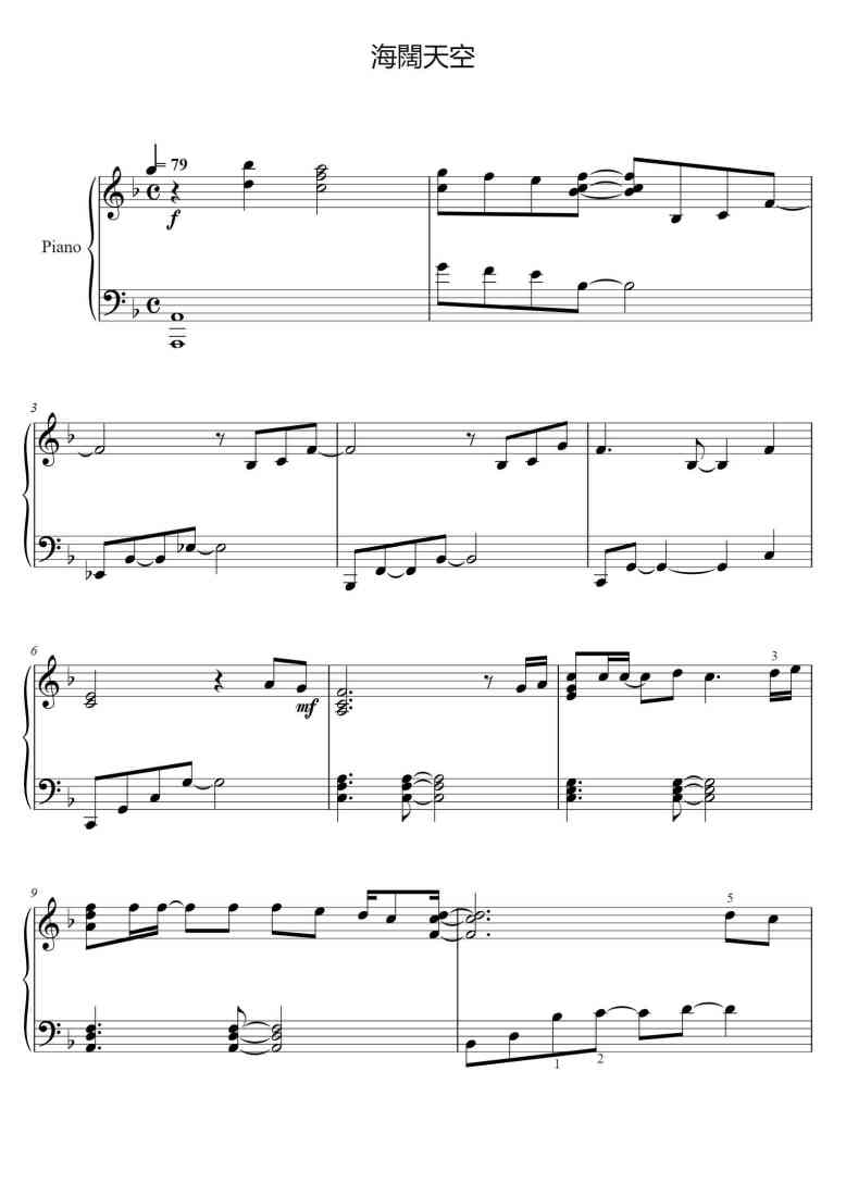 Piano Song Names: 海闊天空