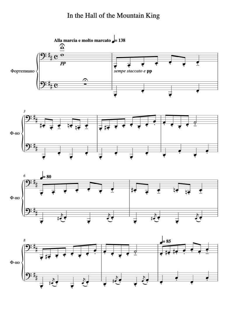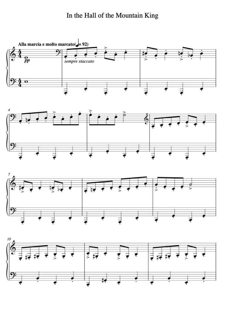 Piano Song Names: Mountain King in C Major