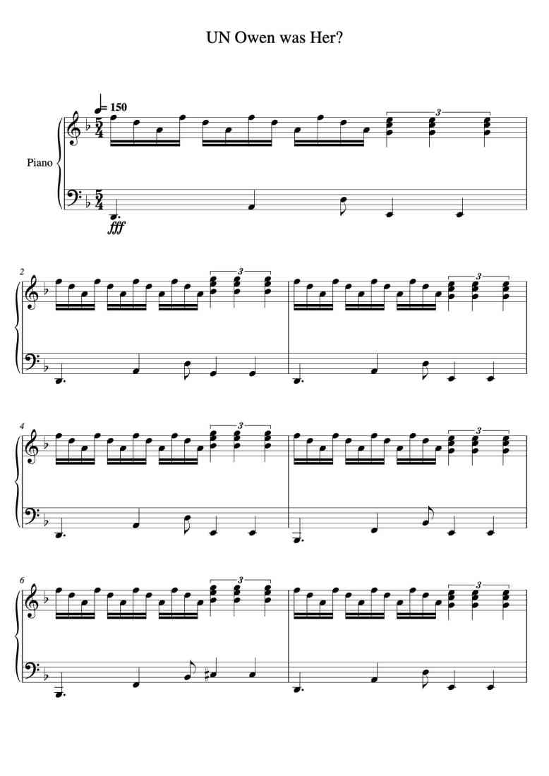 - IntroductionUN Owen Was Her~?, Sheet Music is Db Major, Composer by Egloyd Vicnolds and Arr.ZUN,Suitable for all Users to play learning.