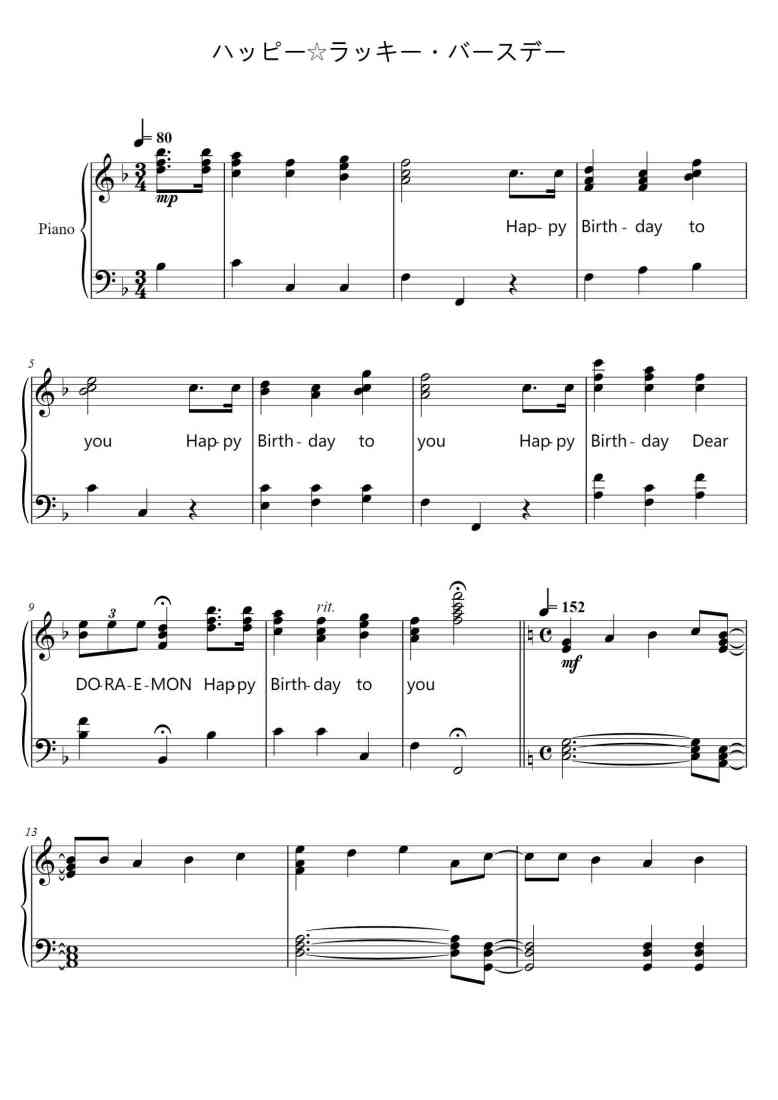 Piano Song Names: ハッピー・ジャムジャム