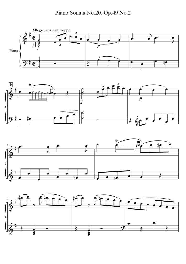Piano Song Names: Piano Sonata No. 20 in G Major, Op. 49, No. 2