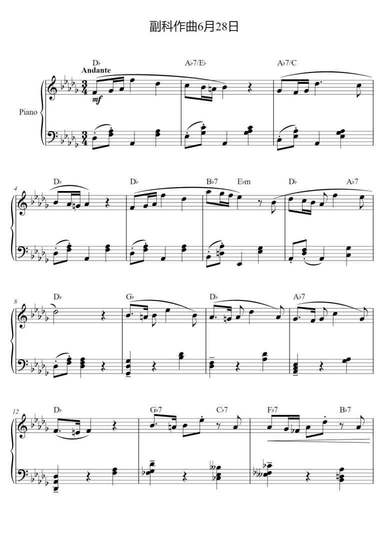 Piano Song Names: 副科作曲7月26日