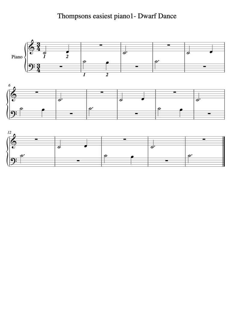 - IntroductionThompsons easiest piano1- March of the Dwarf, Sheet Music is C Major, Composer by John Thompson and Arr.John Thompson,Suitable for all Users to play learning.